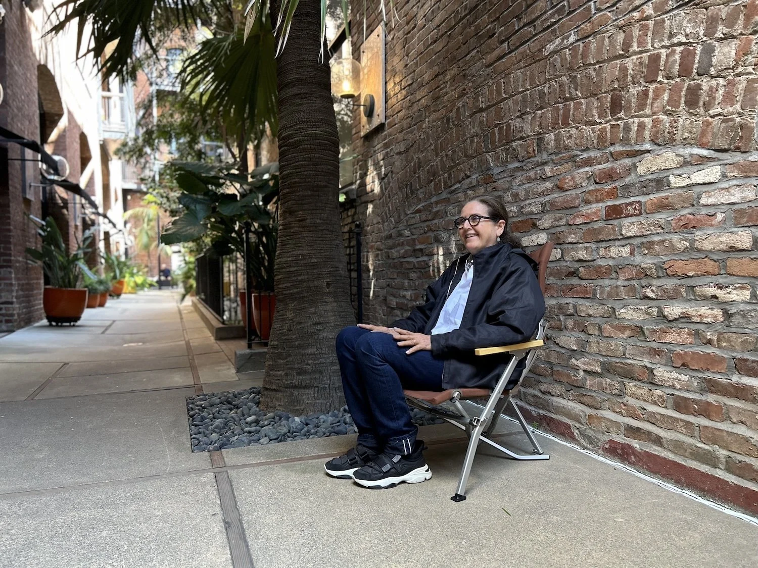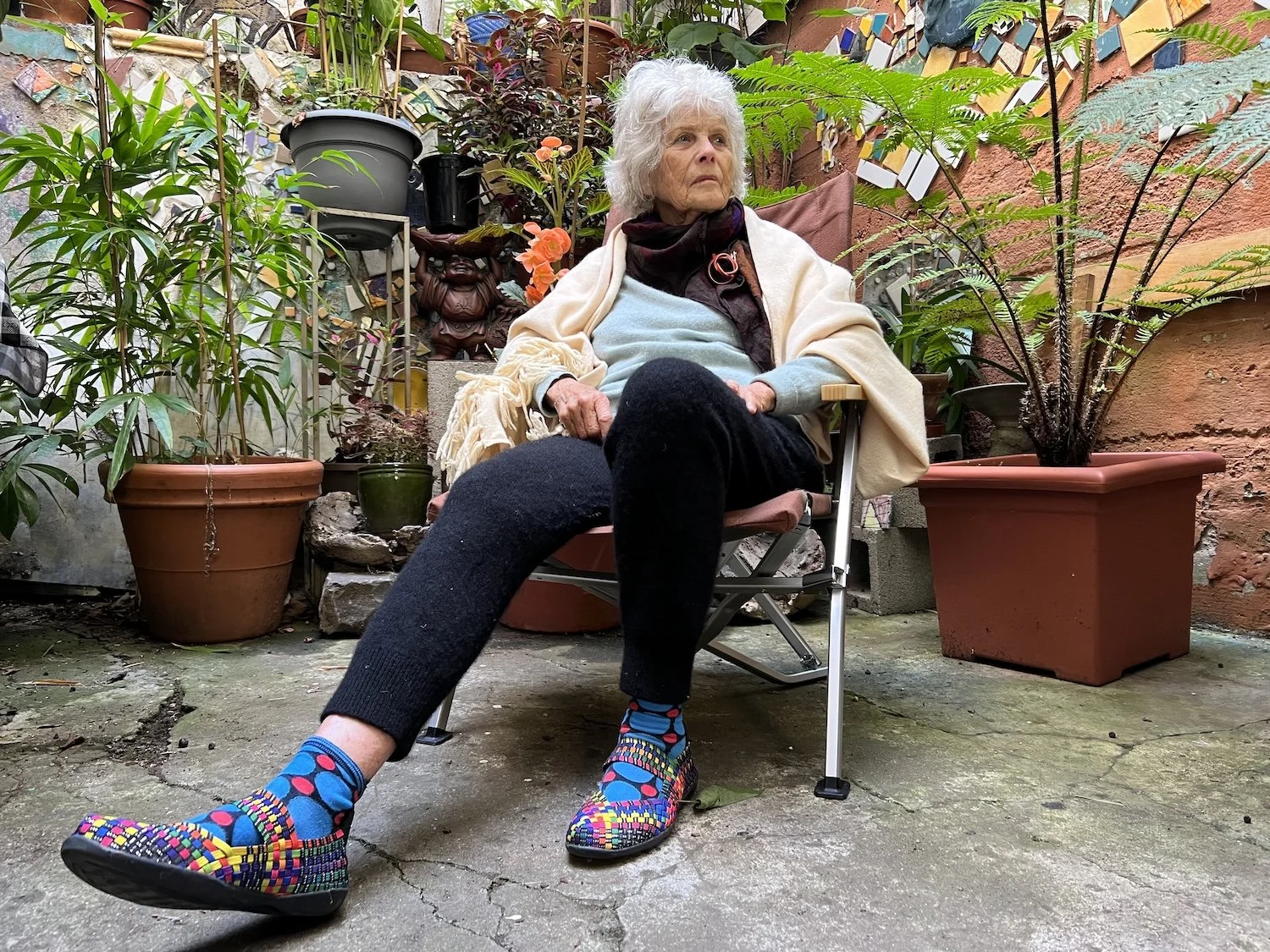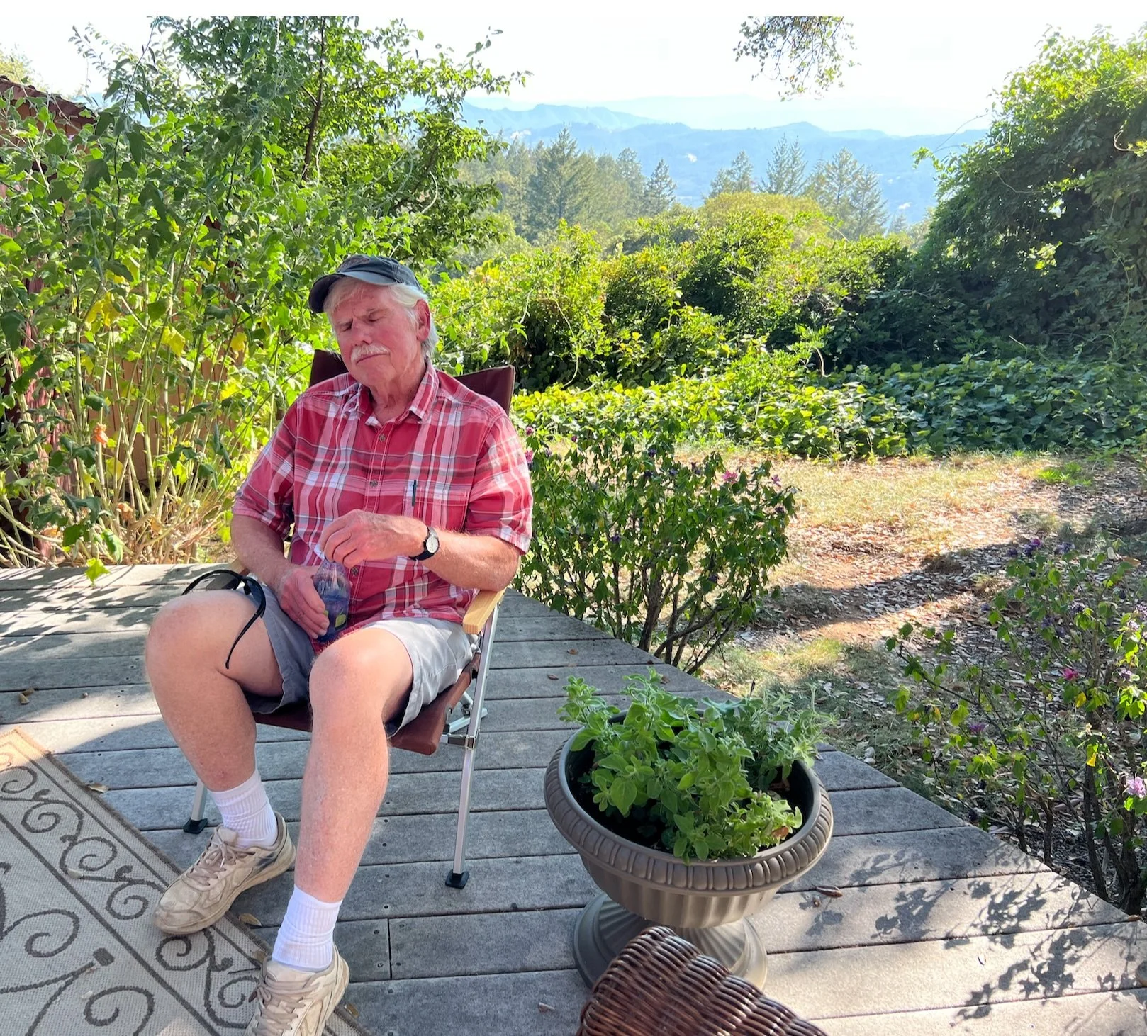 サンタローザは47年間暮らした場所で、私にとっては故郷のような存在です。ソノマ郡に住めることをとても幸せに思っています。けれども今では世界中で気候が変化していて、以前ほど潤ってはいません。⾬もあまり降らなくなりました。いま私は、裏庭のレッドウッドの⽊の下に座っています──そう、私の裏庭で!